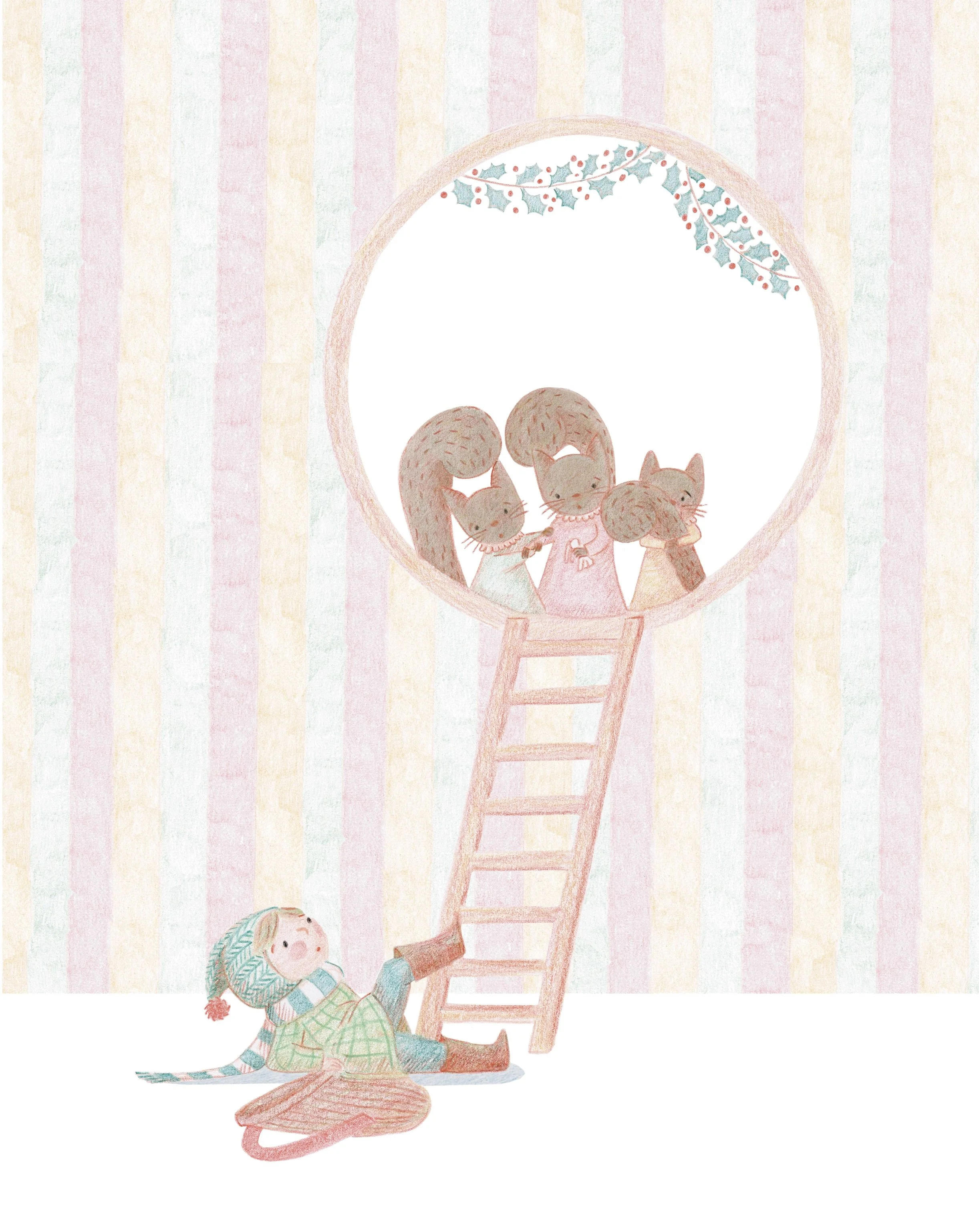 It was time to leave, but Benny was a curious elf. He wanted to know who lived in this house. Looking around he couldn’t make out who they were. He climbed a small ladder to take a peek and found ….