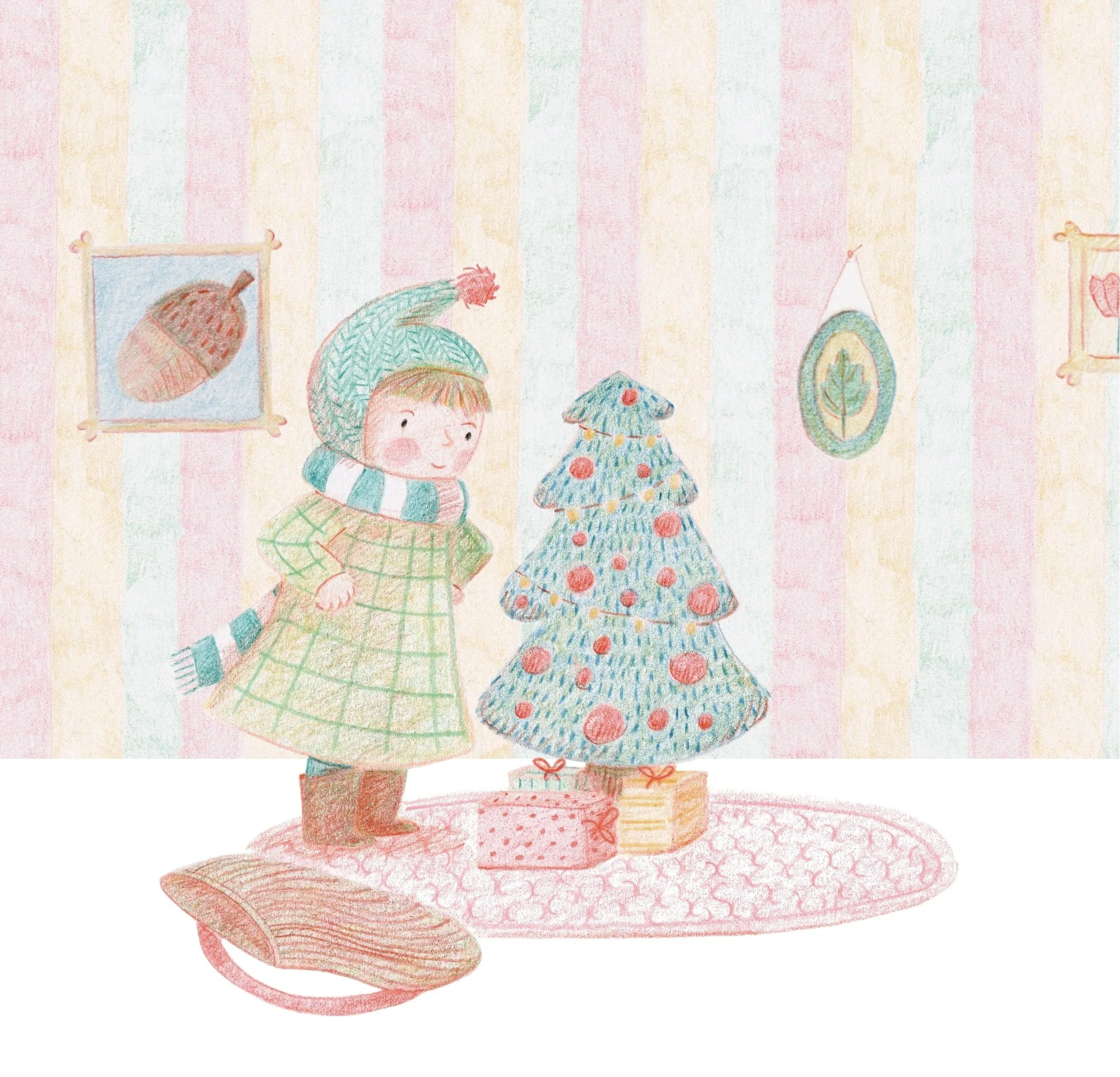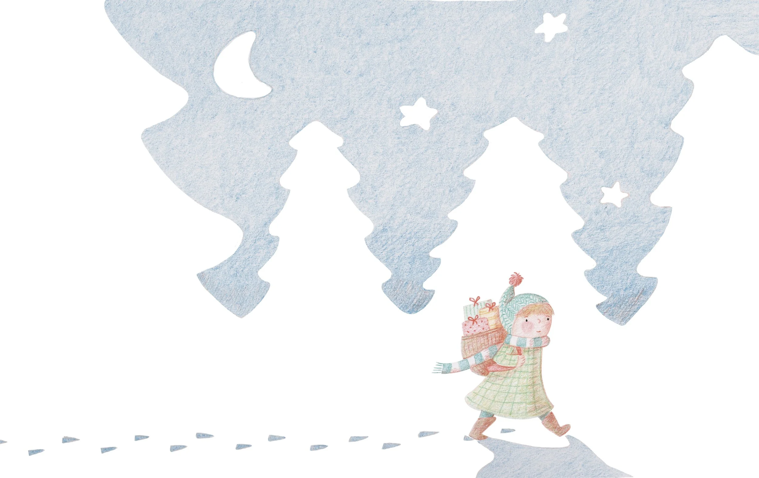 On a cold winter’s night, Benny, a small elf working in Santa’s grotto, set out to deliver his packages. He was walking through a quiet, beautiful pine forest, the stars above him shimmered like little lanterns, and the snow made soft crunching sounds under his boots.