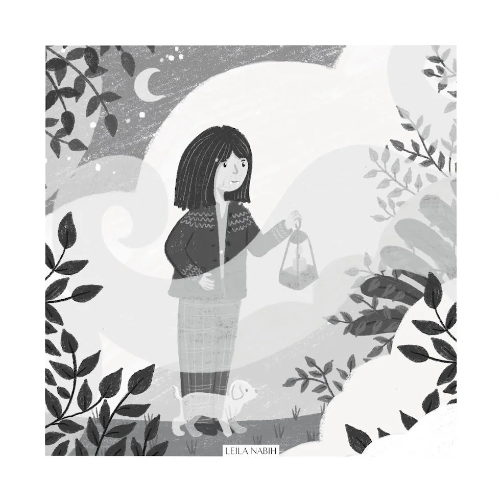 The puppy yapped again, its soft bark echoing in the quiet night. It was as though the little ghost was asking him to come outside. Mo hesitated for a moment but soon grabbed his candle, shielding its flame with his hand as he made his way down the creaky wooden stairs. His heart pounded in his chest, curiosity pulling him forward.